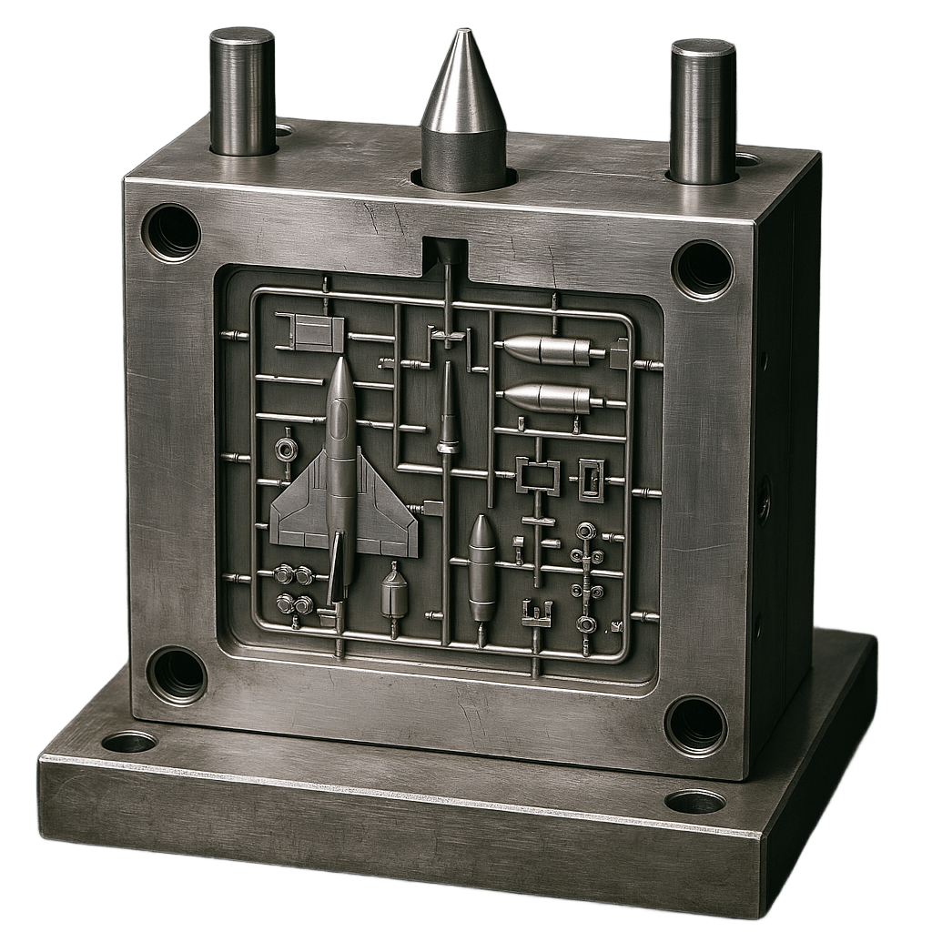 金型を150t以上の圧力で閉じ、溶融樹脂を流し込むと製品のパーツが形成される。